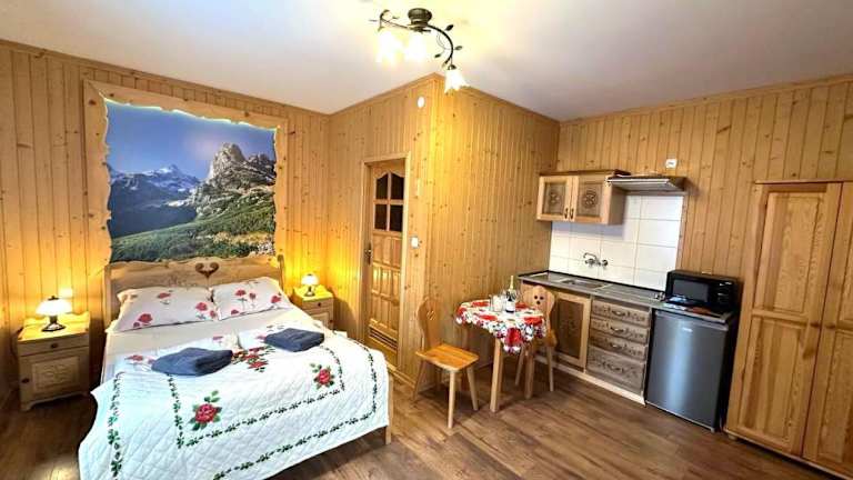 Wesoła Chatka Zakopane - Krupówki 37a -CENTRUM bietet kostenlosen WLAN-Zugang in der gesamten Unterkunft sowie einen Privatparkplatz. Die Unterkunft ist eine Nichtraucherunterkunft und umfasst verschiedene Annehmlichkeiten wie einen Friseur-/Schönheitssalon und einen Minimarkt vor Ort. Die Unterkunft ist für Kinder geeignet, unterliegt jedoch strengen Sicherheitsstandards zum Schutz von Minderjährigen.