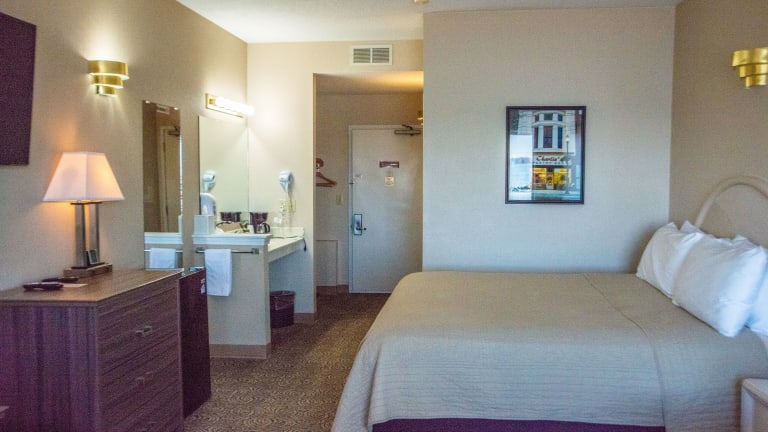 Die Zimmer im Hotel West Bank Inn sind mit einem eigenen Balkon ausgestattet. Jedes Zimmer verfügt über eine Klimaanlage, einen Sitzbereich, einen Flachbild-TV mit Kabelkanälen, einen Safe und ein eigenes Badezimmer mit Badewanne oder Dusche. Zudem sind die Gästezimmer mit einem Kühlschrank eingerichtet.