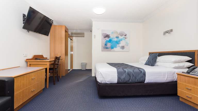 Die klimatisierten Zimmer der West End Motor Lodge sind komfortabel und modern eingerichtet. Jedes Zimmer verfügt über einen Kühlschrank und einen Wasserkocher für Ihre Bequemlichkeit. Das eigene Bad ist mit einer Dusche und kostenfreien Pflegeprodukten ausgestattet. Für Ihre Unterhaltung steht Ihnen ein Flachbild-Kabel-TV zur Verfügung, und Sie können Ihre eigene Musik über die iPod-Dockingstation im Zimmer abspielen. Kostenloses WLAN ist in allen Zimmern verfügbar.