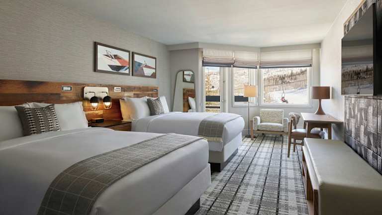 Die modernen Zimmer im Viewline Resort Snowmass, Autograph Collection bieten einen atemberaubenden Blick auf das Resort und verfügen über einen eigenen Balkon. Jedes Zimmer ist stilvoll eingerichtet und mit einem Flachbild-TV ausgestattet. Das en-suite Badezimmer bietet kostenlose Spa-Badeartikel und weiße Bettwäsche sorgt für einen luxuriösen Aufenthalt.