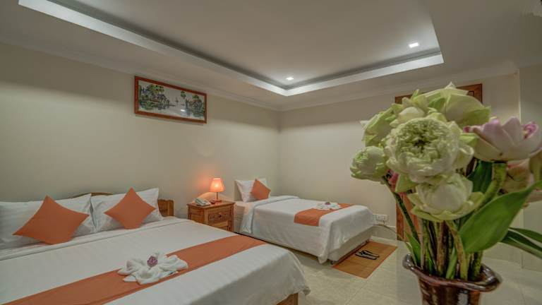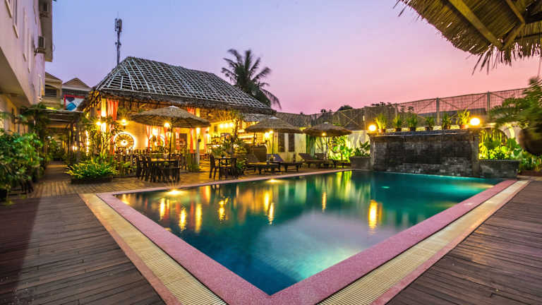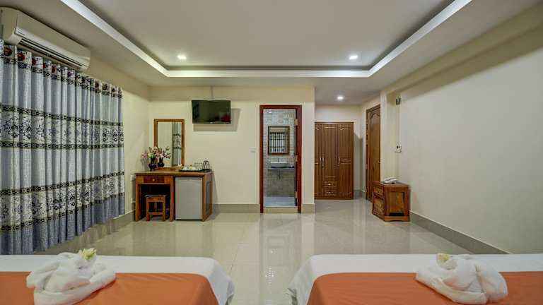 Located in Siem Reap, 1.6 miles from Pub Street, Wheel Garden Residence features an outdoor pool and sun terrace. Guests can enjoy the on-site bar. Every room comes with a flat-screen TV with satellite channels. You will find a kettle in the room. Each room includes a private bathroom. Extras include bathrobes, slippers and free toiletries. Bike rental and car rental are available at this hotel and the area is popular for biking. Angkor Wat is 2.4 miles from Wheel Garden Residence, and Wat Thmei is 0.4 miles away. The nearest airport is Angkor International Airport, 3.7 miles from the property.