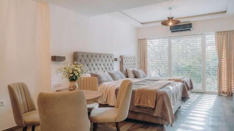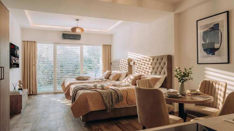 Die Unterkunft White Blue Ohrid - Luxury Apt bietet Übernachtungsmöglichkeiten mit kostenlosem WLAN und Klimaanlage. Gäste können den Garten sowie die Terrasse mit Stadtblick genießen.
