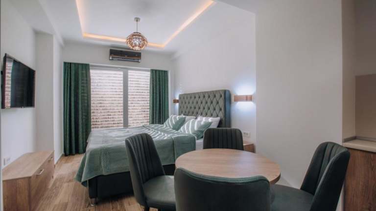 Die Unterkunft White Blue Ohrid - Luxury Apt bietet Übernachtungsmöglichkeiten mit kostenlosem WLAN und Klimaanlage. Gäste können den Garten sowie die Terrasse mit Stadtblick genießen.