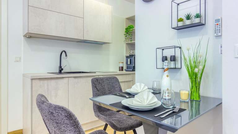 Die Apartments verfügen über einen Sitzbereich, einen Satelliten Flachbild-TV und eine voll ausgestattete Küche, die mit einem Kühlschrank, Geschirrspüler, Ofen, Herdplatte, Toaster, Kaffeemaschine und Wasserkocher ausgestattet ist. Zudem gibt es ein eigenes Badezimmer mit Dusche und kostenlosen Pflegeprodukten.