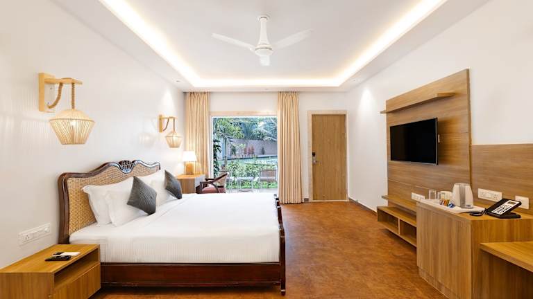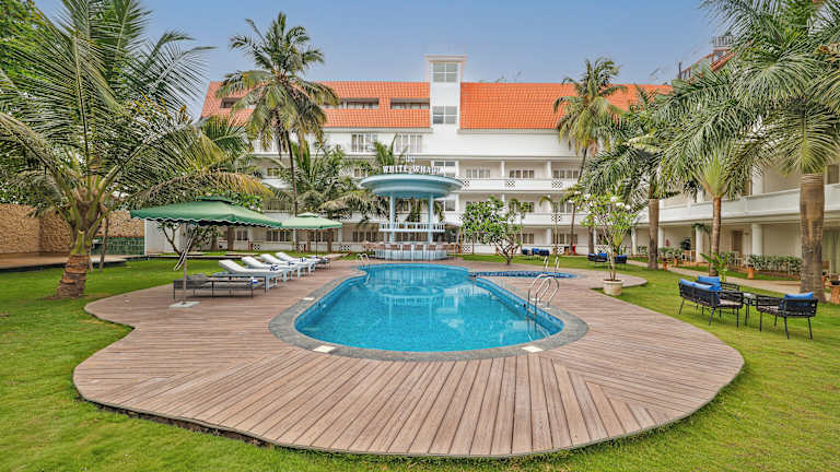 Das White Wharf Beach Resort Morjim Goa bietet Übernachtungsoptionen in der Region Morjim und zeichnet sich durch eine direkte Strandlage aus. Die Unterkunft umfasst einen Außenpool, ein Fitnesscenter und einen Garten. Zu den Einrichtungen gehören ein Restaurant, Zimmerservice und eine rund um die Uhr besetzte Rezeption. Kostenloses WLAN ist in der gesamten Anlage verfügbar.