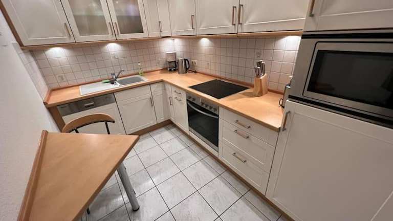 Die Ferienwohnung verfügt über eine gut ausgestattete Küche mit Kühlschrank und Geschirrspüler, die Selbstverpflegung ermöglicht. Essenslieferungen in die Unterkunft sind ebenfalls möglich. Für zusätzlichen Komfort können Handtücher und Bettwäsche gegen Aufpreis bereitgestellt werden.