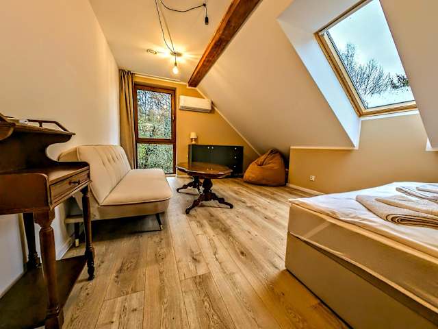 In der Unterkunft steht den Gästen eine Sauna zur Verfügung. Die Übernachtungsmöglichkeiten bieten modernen Komfort und sind für einen entspannenden Aufenthalt ausgelegt.