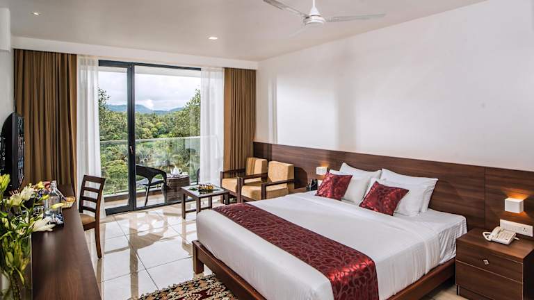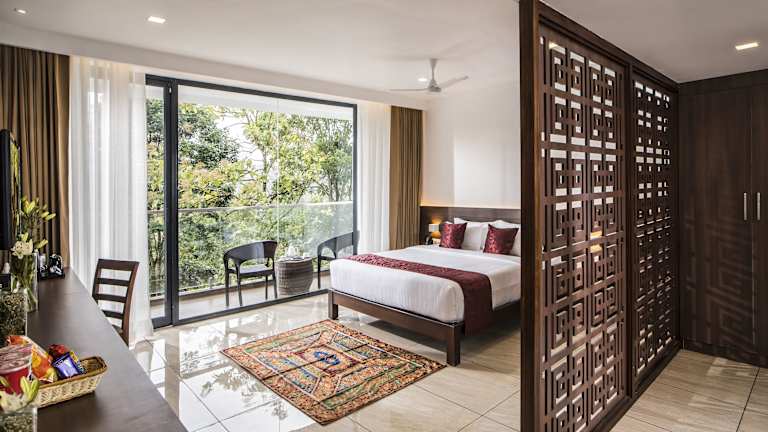 Das WILD AVENUE RESORT & SPA in Thekkady ist der perfekte Ort für einen erholsamen Urlaub. Mit seinem Außenpool, Fitnesscenter und einem wunderschönen Garten bietet das Resort eine Vielzahl von Freizeitmöglichkeiten. Der Zimmerservice und der Kinderspielplatz sorgen für zusätzlichen Komfort und Unterhaltung. Das Resort bietet auch kostenfreie Privatparkplätze und einen Flughafentransfer. Die Zimmer sind geräumig und verfügen über Annehmlichkeiten wie einen Balkon, ein eigenes Bad mit Dusche und kostenlosen Pflegeprodukten, einen Flachbild-TV und eine Klimaanlage. Einige Zimmer bieten auch einen separaten Sitzbereich. Jeden Morgen wird ein leckeres Frühstück serviert und im hoteleigenen Restaurant können Sie eine Vielzahl von köstlichen Gerichten aus verschiedenen Küchen genießen. Das Resort bietet auch vegetarische, Halal- und koschere Speisen auf Anfrage. Sportbegeisterte können Tischtennis und Darts spielen und die Gegend eignet sich ideal zum Wandern und Radfahren. Das freundliche Personal an der Rezeption spricht mehrere Sprachen und steht Ihnen gerne bei der Planung Ihres Aufenthalts zur Verfügung. Der internationale Flughafen Kochi ist nur 106 km entfernt.