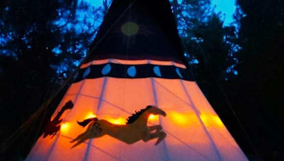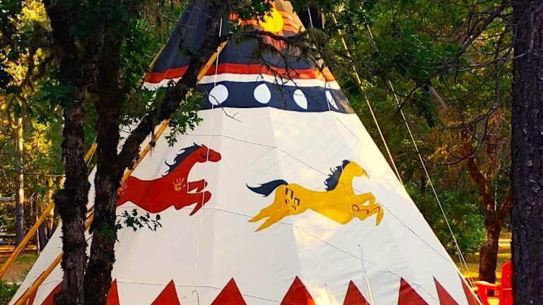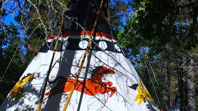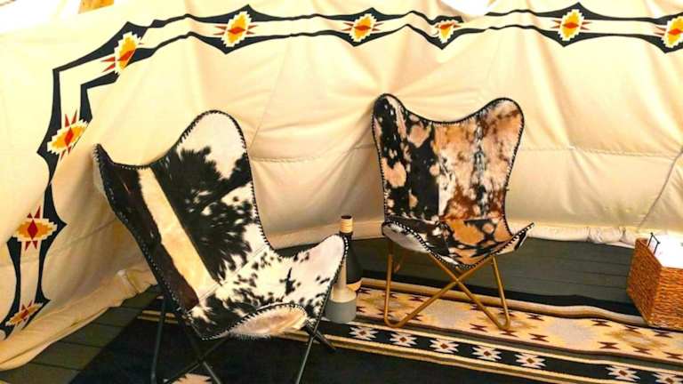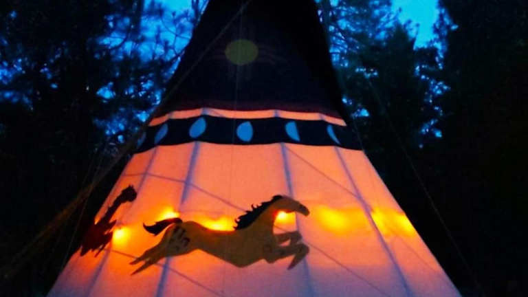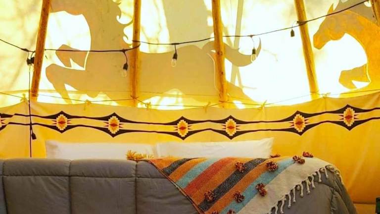 Wild Horses Luxury Tipi - Adjustable King Bed ist eine Zelt-Lodge Ausstattung mit einem Whirlpool. Die Unterkunft bietet zudem eine Veranda oder einen Patio, die zu einem entspannten Aufenthalt einladen.