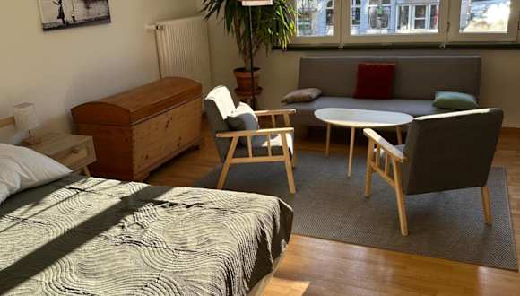 Die Ferienwohnung verfügt über 1 Schlafzimmer, eine Küche mit Kühlschrank und Ofen, einen Flachbild-TV, einen Sitzbereich und 1 Badezimmer mit Dusche. Handtücher und Bettwäsche werden zur Verfügung gestellt.