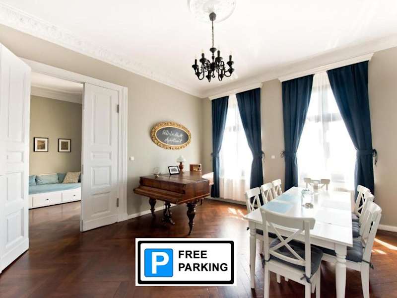 Das Wilhelmstadt Apartment 90 m - PARKING bietet Ihnen eine komfortable Unterkunft in einem historischen Gebäude im Herzen von Toruń. Mit kostenfreiem WLAN und einem Balkon genießen Sie hier eine tolle Aussicht auf die Stadt. Die Lage des Apartments ist ideal, nur wenige Gehminuten von der Promenade Bulwar Filadelfijski und dem Alten Rathaus entfernt. Auch das Kopernikus-Denkmal und das Planetarium sind bequem zu Fuß erreichbar.