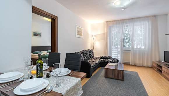 Die Wili Tatry Apartments in Tatranská Lomnica bieten modern eingerichtete Unterkünfte mit kostenfreiem WLAN und Zugang zu einem schönen Garten. Die Apartments verfügen über einen Balkon, einen gemütlichen Sitzbereich und einen Flachbild-Sat-TV. In der voll ausgestatteten Küche können Sie Ihre eigenen Mahlzeiten zubereiten und im Essbereich genießen. Das private Badezimmer ist mit kostenlosen Pflegeprodukten ausgestattet. Einige Apartments verfügen über einen Geschirrspüler, einen Backofen und einen Wasserkocher. Zusätzlich können Sie im Fitnesscenter trainieren und auf der Terrasse entspannen. Die Lage der Unterkunft bietet Ihnen die Möglichkeit, in der Nähe Skifahren und Radfahren zu gehen. Das Apartment liegt nur 1,3 km vom Jamy entfernt und der Flughafen Poprad-Tatry ist ca. 17 km entfernt.