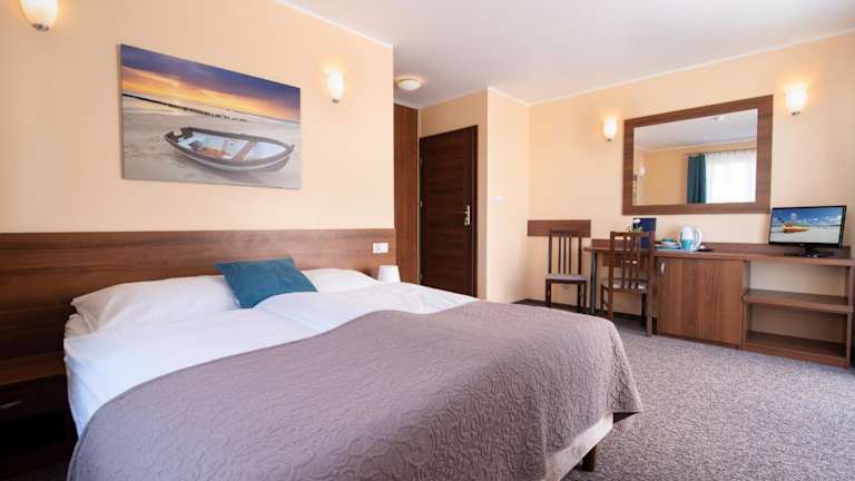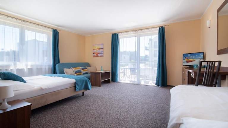 Die Zimmer in der Willa Alga sind hell und im klassischen Stil eingerichtet. Jedes Zimmer verfügt über einen Flachbild-TV und einen Balkon, auf dem Sie die frische Luft und die Aussicht genießen können. Das eigene Bad ist mit einer Dusche und Handtüchern ausgestattet, und die Bettwäsche wird gestellt, um Ihnen einen komfortablen Aufenthalt zu ermöglichen.