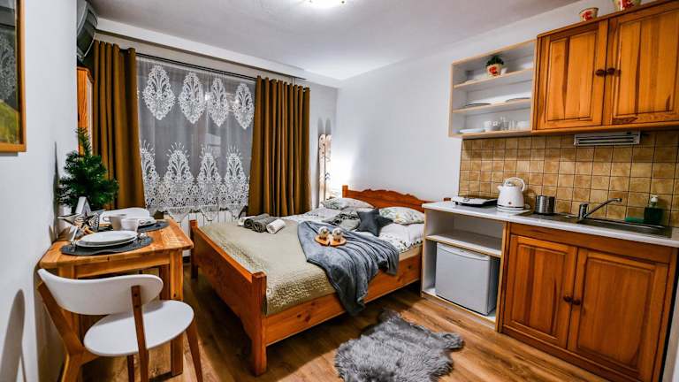 Das Rentplanet - Willa Bachledówka ist die perfekte Unterkunft für Ihren Aufenthalt in Zakopane. Mit seiner Lage nur 5 km vom Tatra-Nationalpark entfernt bietet es Ihnen eine komfortable Unterkunft mit kostenfreiem WLAN und Privatparkplätzen. Die Apartments sind gut ausgestattet und verfügen über eine Gemeinschaftslounge, einen Garten und eine Gemeinschaftsküche. Genießen Sie ein kontinentales Frühstück und erkunden Sie die umliegenden Skigebiete. Der Aqua Park Zakopane und der Berg Gubalowka sind ebenfalls in der Nähe.
