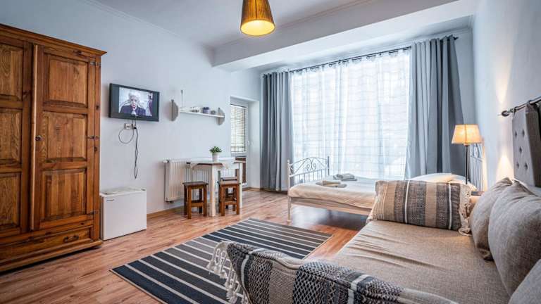 Die Zimmer in der Villa Cicha Woda II sind geräumig und bieten stilvolle Holzmöbel, die eine gemütliche Atmosphäre schaffen. Jedes Zimmer verfügt über einen Flachbild-TV und ein eigenes Bad mit Dusche. Für zusätzlichen Luxus steht eine Zimmerkategorie zur Verfügung, die mit einer Whirlpool-Badewanne ausgestattet ist. Die moderne Ausstattung sorgt dafür, dass sich die Gäste wie zu Hause fühlen.