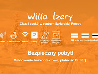 Die Unterkunft Willa Izery bietet kostenloses WLAN sowie einen Privatparkplatz für die Gäste. In der Willa sind Nichtraucherzimmer vorhanden. Für ankommende Gäste gelten bestimmte Check-in-Zeiten sowie Regeln für die Ankunft außerhalb der regulären Zeiten. Feiern sind in der Unterkunft nicht gestattet, und es gibt spezielle Bestimmungen zum Schutz von Minderjährigen.