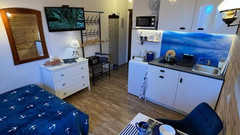 Das Hotel Willa Klara in Jastarnia ist das ganze Jahr über geöffnet und bietet Ihnen eine entspannte und komfortable Atmosphäre für Ihren Aufenthalt in der Region Pommern. Genießen Sie die Annehmlichkeiten wie kostenfreies WLAN, kostenlose Parkplätze und Grillmöglichkeiten. Die Zimmer und Suiten sind modern eingerichtet und verfügen über einen Flachbild-TV, eine Minibar sowie Tee- und Kaffeezubehör. Die Apartments bieten zusätzlich eine Küchenzeile und eine Waschmaschine. Entspannen Sie auf der Sonnenterrasse, nutzen Sie den Fahrradverleih und erkunden Sie die wunderschöne Umgebung beim Wandern.
