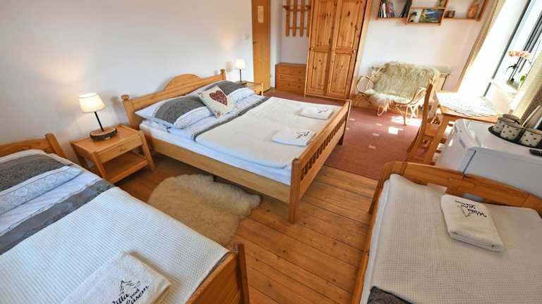 Die Zimmer in der Willa Pod Lasem sind gemütlich eingerichtet und bieten einen Flachbild-TV, einen Balkon und einen Sitzbereich. Von allen Zimmern aus genießen Sie einen herrlichen Blick auf die Berge und den Garten. Die Badezimmer befinden sich auf dem Flur neben den Zimmern. WLAN ist kostenlos verfügbar.
