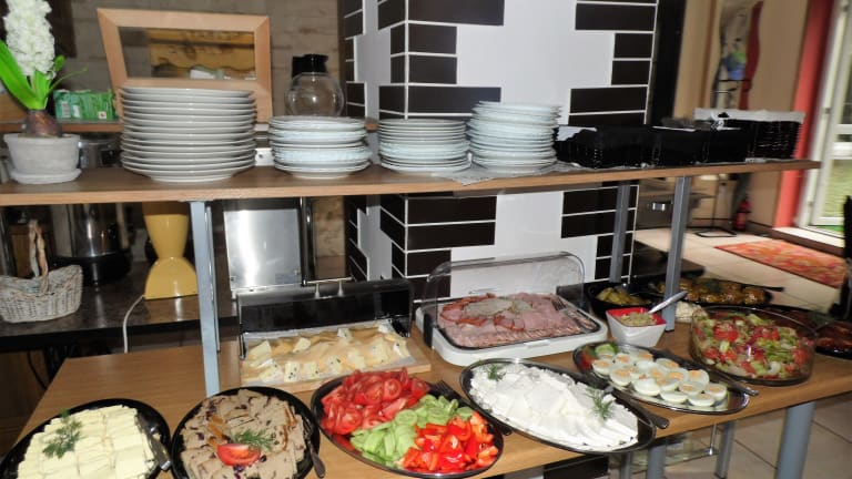 Im Speisesaal der Willa Maja erwartet Sie ein reichhaltiges Frühstücksbuffet, das Sie auf den Tag vorbereitet und Ihnen Energie für Ihre Aktivitäten gibt. Der Speisesaal verfügt über einen gemütlichen Kamin, der eine warme und einladende Atmosphäre schafft. Im Sommer können Sie auch Kaffee und Tee auf der Terrasse genießen und dabei die frische Luft und die schöne Umgebung genießen.