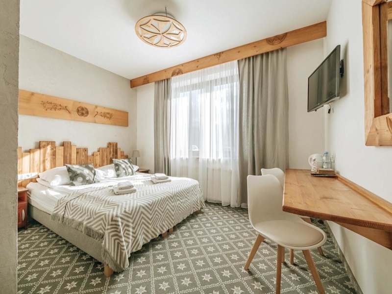 Erleben Sie einen erholsamen Aufenthalt im Willa Swoboda in Zakopane. Die ruhige Lage, das kostenlose WLAN und die Parkplätze machen dieses Hotel zu einer idealen Wahl. Die Zimmer sind gemütlich eingerichtet und verfügen über Annehmlichkeiten wie Flachbild-TV und Wasserkocher. Das Hotel bietet außerdem ein kleines Kino, ein Spielzimmer für Kinder und eine Küchenzeile. Genießen Sie das Frühstücksbuffet und traditionelle polnische Gerichte im hauseigenen Restaurant. Die Straßenbahnhaltestelle ist nur 3,5 km entfernt und bietet eine gute Anbindung an die Umgebung.