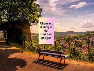 Die Unterkunft WINETIME - Apartment Herxheim befindet sich zentrumsnah in Herxheim, in der Region Rheinland-Pfalz, nahe Landau. Die Umgebung bietet eine Verbindung zu verschiedenen Sehenswürdigkeiten, darunter das Badische Staatstheater und das Schloss Karlsruhe, die in relativ kurzer Entfernung zu erreichen sind. Der nächstgelegene Flughafen ist der Flughafen Karlsruhe/Baden-Baden, etwa 51 km entfernt.