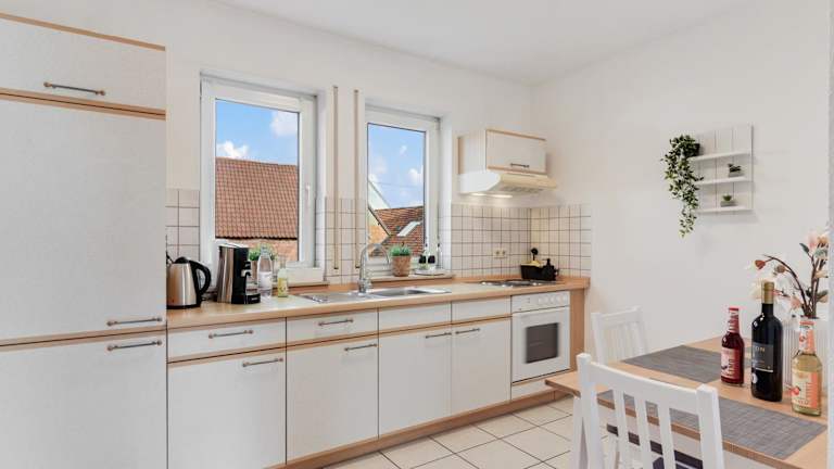 Die Küche der Unterkunft ist mit einem Kühlschrank, Ofen und Herdplatte ausgestattet. Es stehen ein Toaster, eine Kaffeemaschine und ein Wasserkocher zur Verfügung. Essenslieferung in die Unterkunft ist möglich.