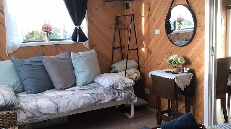 Das klimatisierte Ferienhaus verfügt über ein gemütliches Schlafzimmer, ein Wohnzimmer und eine voll ausgestattete Küche mit Kühlschrank und Kaffeemaschine. Das Badezimmer ist mit einer Dusche und kostenlosen Pflegeprodukten ausgestattet. Handtücher und Bettwäsche werden gestellt, um Ihnen einen komfortablen Aufenthalt zu ermöglichen.