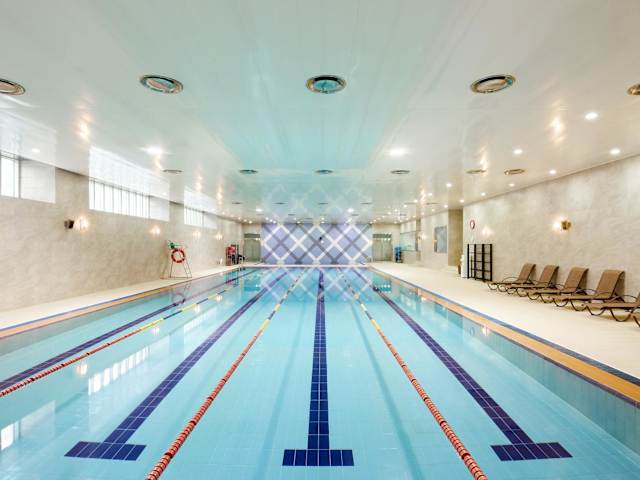 Das Fitnesscenter umfasst einen Innenpool und eine Sauna, wobei der Zugang zur Sauna und zum Pool an bestimmten Tagen, insbesondere montags und an Feiertagen, eingeschränkt sein kann. Das Hotel bietet auch andere Sport- und Freizeiteinrichtungen, allerdings sind keine spezifischen Aktivitäten aufgeführt.