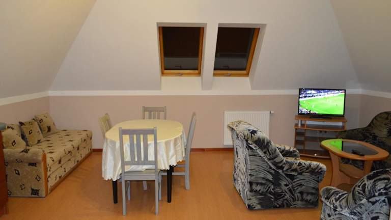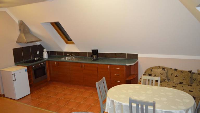 Die Studios und Chalets im Wodny Świat sind gemütlich und komfortabel eingerichtet. Jedes Zimmer verfügt über einen LCD-TV, eine Terrasse und einen separaten Sitzbereich. Die voll ausgestattete Küchenzeile mit Essbereich, Kühlschrank und Küchenutensilien bietet Ihnen die Möglichkeit, Ihre eigenen Mahlzeiten zuzubereiten. Das Badezimmer ist mit einer Duschkabine ausgestattet und bietet Ihnen einen schönen Blick auf den See und den Garten.
