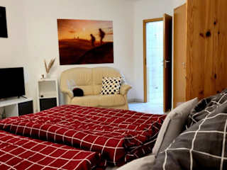 Die Ferienwohnung verfügt über ein gemütliches Schlafzimmer, in dem Sie sich nach einem erlebnisreichen Tag entspannen können. Der Flachbild-TV im Wohnbereich lädt zum Entspannen ein, während der Essbereich perfekt ist, um Ihre Mahlzeiten zu genießen. Die Küche ist mit einem Kühlschrank und einem Backofen ausgestattet, so dass Sie Ihre Lieblingsgerichte zubereiten können. Handtücher und Bettwäsche werden gestellt, um Ihren Aufenthalt so angenehm wie möglich zu gestalten.