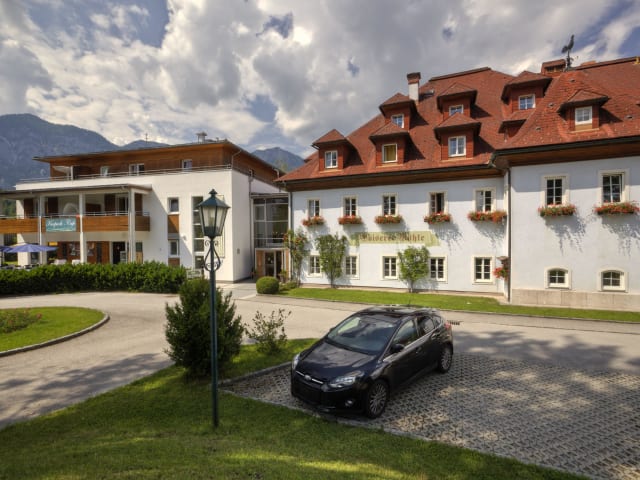 Einzigartige Lage Eine magische Anziehungskraft übt die einzigartige Lage der Goiserer Mühle, direkt im gepflegten Kurpark von Bad Goisern, auf viele unserer Gäste aus. Unser 4-Stern Wohlfühlhotel liegt unmittelbar am romantisch dahin plätschernden Mühlbach, wo man den zahlreichen Fischen und Enten beim Schwimmen zuschauen kann oder einfach nur die Beine im Bach baumeln lässt. Ein besonders reizvoller Mix aus Tradition und Moderne findet sich sowohl in der Architektur als auch in allen Räumen unseres Hauses wider. Romantische Stüberl mit altem Gewölbe werden kombiniert mit zeitgemäßen Möbel und moderner Kunst.