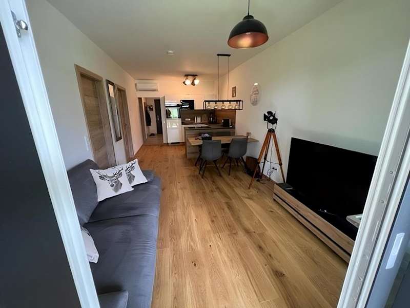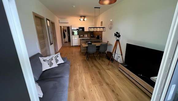 Die Ferienwohnung ist mit einem Schlafzimmer, einer Küche ausgestattet mit Kühlschrank und Geschirrspüler, einem Flachbild-TV, einem Sitzbereich sowie einem Badezimmer mit Dusche eingerichtet. Handtücher und Bettwäsche werden bereitgestellt.