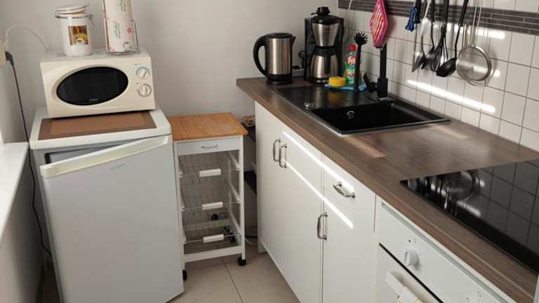 Die Ferienwohnung umfasst 1 Schlafzimmer, einen Flachbild-TV, eine gut ausgestattete Küche mit Kühlschrank und Ofen sowie ein Badezimmer mit Dusche. Handtücher und Bettwäsche werden bereitgestellt.