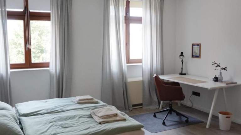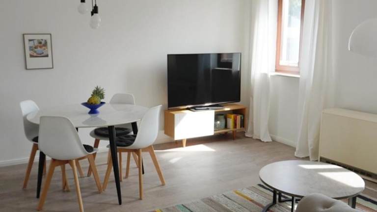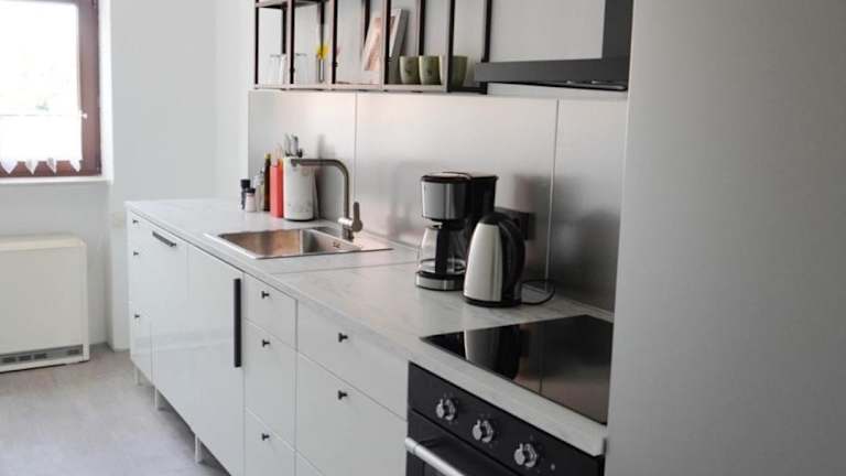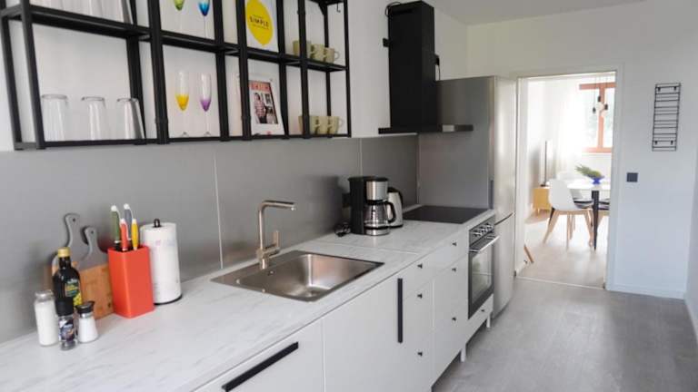Die Ferienwohnung umfasst ein Schlafzimmer, ein Wohnzimmer und eine voll ausgestattete Küche, die mit einem Kühlschrank und einer Kaffeemaschine ausgestattet ist. Zudem stehen ein Badezimmer mit Dusche und Haartrockner zur Verfügung. Handtücher und Bettwäsche sind ebenfalls vorhanden.