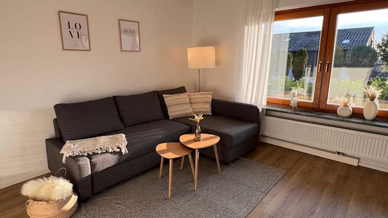 Die Ferienwohnung ist mit zwei Schlafzimmern, einer voll ausgestatteten Küche mit Kühlschrank und Geschirrspüler, einem Flachbild-TV sowie einem Sitzbereich ausgestattet. Zudem gibt es ein Badezimmer mit Dusche. Handtücher und Bettwäsche sind ebenfalls vorhanden.