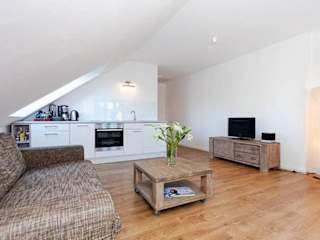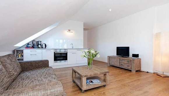 Die Ferienwohnung verfügt über ein Schlafzimmer und ist mit einem TV sowie einer voll ausgestatteten Küche ausgestattet. Die Küche beinhaltet einen Kühlschrank, Geschirrspüler, Waschmaschine, Ofen und Herdplatte. Handtücher und Bettwäsche werden bereitgestellt.