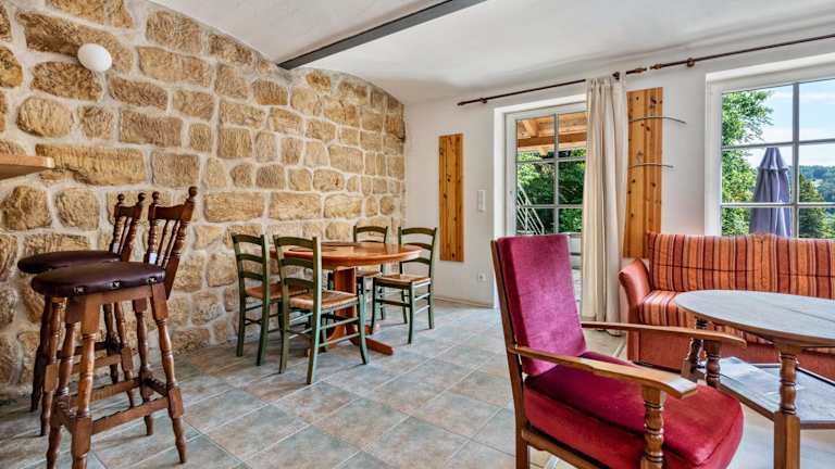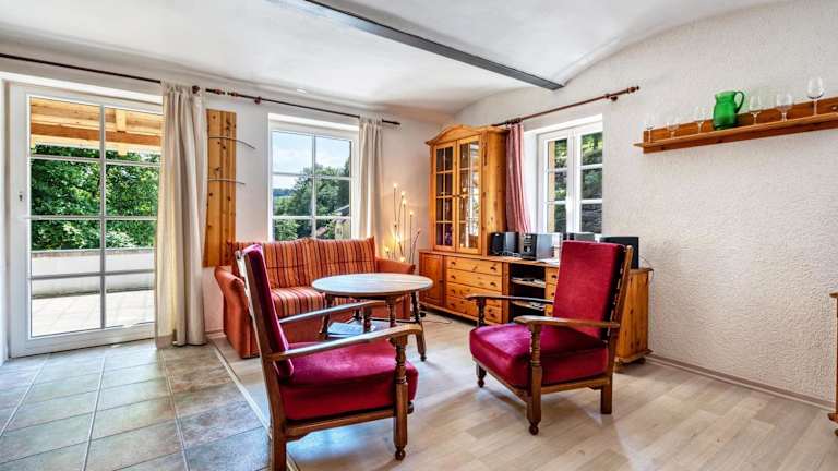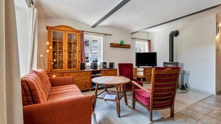 Die Ferienwohnung umfasst 1 Schlafzimmer, ein Wohnzimmer mit TV und ein Badezimmer mit Badewanne. Zudem stehen Handtücher und Bettwäsche bereit. Die Unterkunft bietet eine Terrasse mit Blick ins Grüne sowie Gartenmöbel.