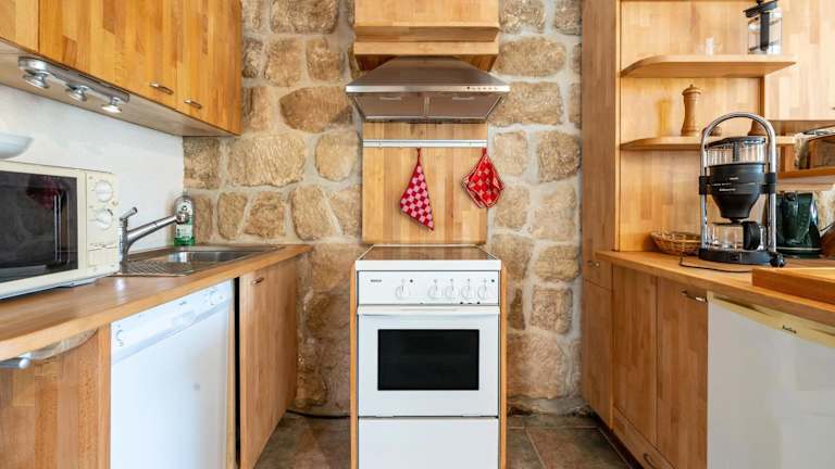 Es gibt die Möglichkeit, die gut ausgestattete Küche mit Kühlschrank und Geschirrspüler zu nutzen. Grillmöglichkeiten sind ebenfalls vorhanden.