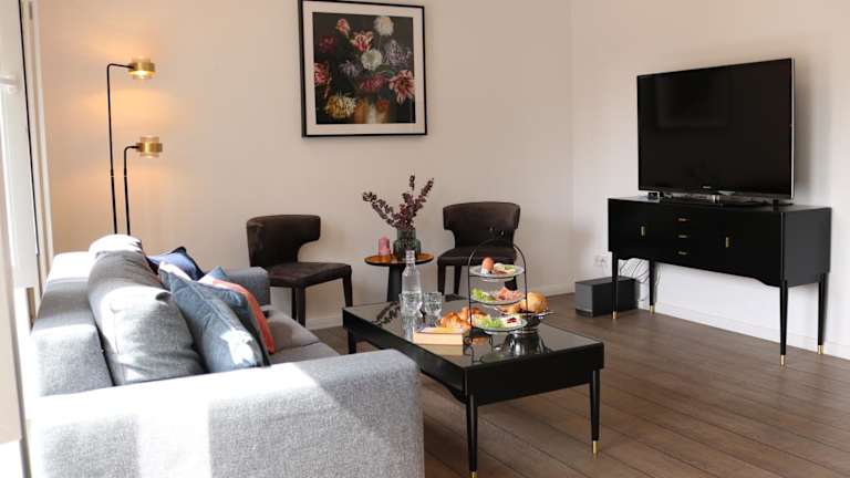 Die Unterkunft bietet einen Sitzbereich, einen Satelliten Flachbild-TV und eine voll ausgestattete Küche mit Kühlschrank, Geschirrspüler, Ofen, Herdplatte, Toaster, Kaffeemaschine und Wasserkocher. Das eigene Badezimmer ist mit einer Dusche und einem Haartrockner ausgestattet.