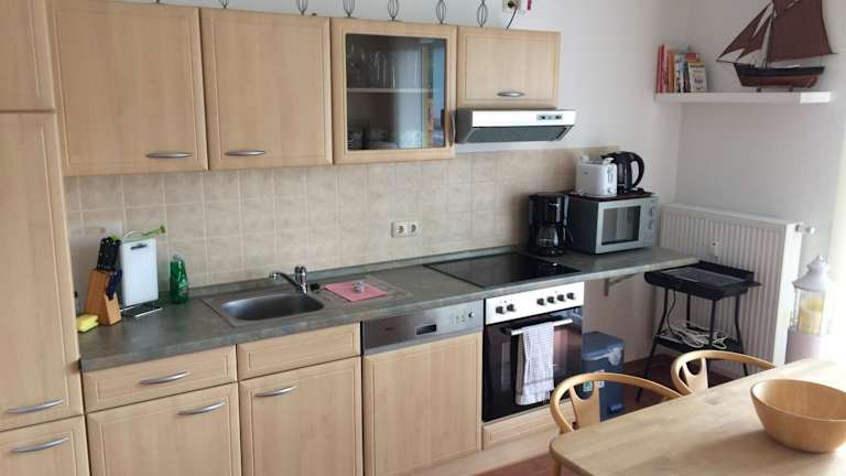 Die Ferienwohnung beinhaltet ein Schlafzimmer, eine Küche, die mit einem Kühlschrank und einem Geschirrspüler ausgestattet ist. Des Weiteren stehen ein Flachbild-TV, ein Sitzbereich und ein Badezimmer mit Dusche zur Verfügung. Auf Anfrage können Handtücher und Bettwäsche bereitgestellt werden.