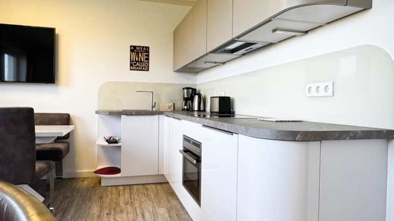 Die Wohnung verfügt über 2 Schlafzimmer, ein Wohnzimmer und ein Badezimmer mit Dusche. Die gut ausgestattete Küchenzeile ist mit einem Kühlschrank und einem Geschirrspüler versehen. Ein Flachbild-TV gehört ebenfalls zur Ausstattung. Handtücher und Bettwäsche können gegen Aufpreis bereitgestellt werden.