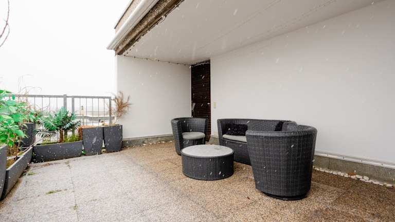 Die Wohnung mit Dachterrasse bietet eine komfortable und gut ausgestattete Ferienunterkunft mit kostenlosem WLAN und einer Terrasse.