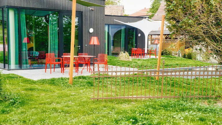 Der Garten der Unterkunft lädt zum Entspannen ein. In der Umgebung können Sie Wandern und die Sehenswürdigkeiten erkunden. Der saisonale Außenpool bietet eine erfrischende Abkühlung an warmen Tagen.