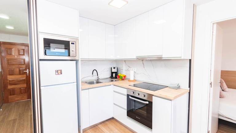 Die Unterkunft verfügt über ein Schlafzimmer sowie eine voll ausgestattete Küche mit Kühlschrank und Mikrowelle. Ein Badezimmer mit Dusche, Haartrockner und Waschmaschine ist ebenfalls vorhanden. Handtücher und Bettwäsche werden bereitgestellt, um den Gästen einen angenehmen Aufenthalt zu gewährleisten.