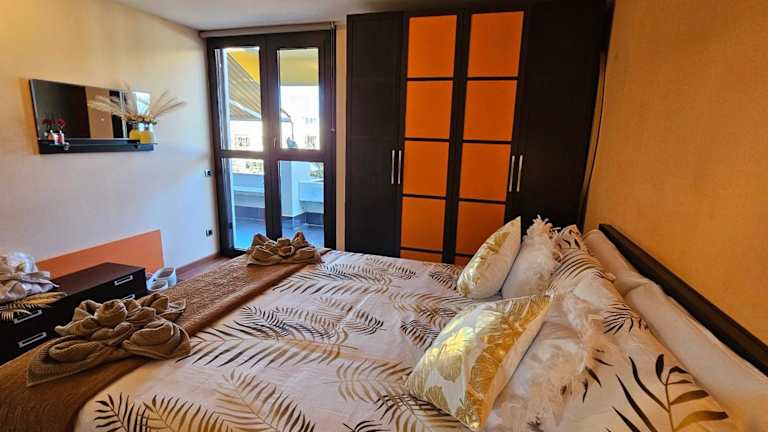 Die Ferienwohnung besteht aus 2 Schlafzimmern, einem Wohnzimmer und 1 Badezimmer. Zur Ausstattung gehören Klimaanlage, Flachbild-TV mit Satellitenkanälen, Blu-ray-Player, DVD-Player, CD-Player und eine iPod-Dockingstation.