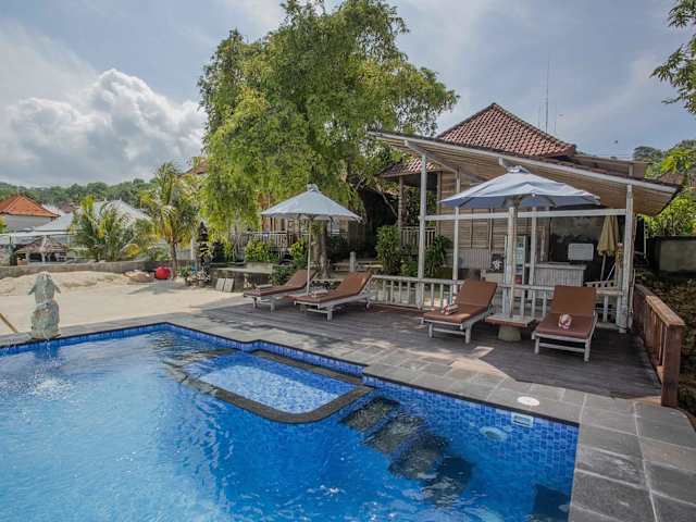 Die Wooden Beach Sunset Cottages in Nusa Lembongan bieten eine komfortable Unterkunft in Strandnähe. Die klimatisierten Cottages sind mit kostenfreiem WLAN ausgestattet und verfügen über ein eigenes Bad. Ein kontinentales Frühstück wird angeboten und Gäste können den eigenen Strandbereich nutzen. Die Unterkunft befindet sich in der Nähe von beliebten Sehenswürdigkeiten wie dem Secret Beach und dem Gala-Gala Underground House. Der internationale Flughafen Denpasar ist ca. 83 km entfernt.