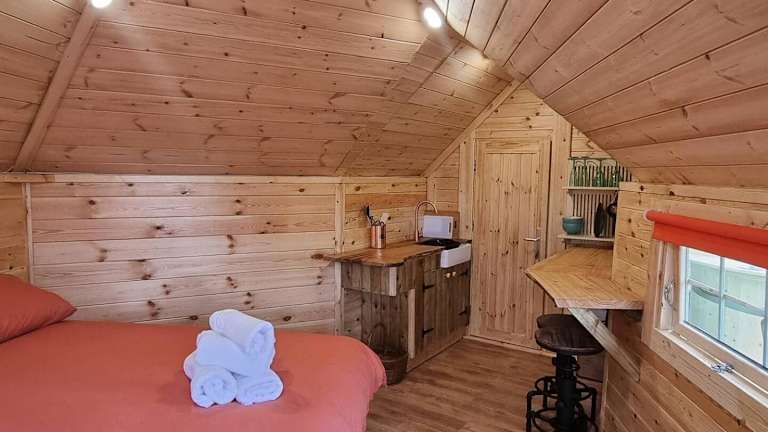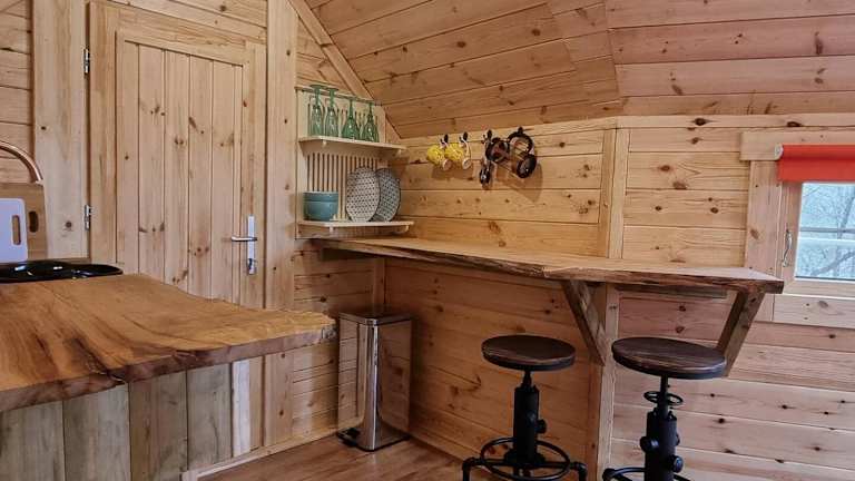 Die Woodland Cabin with Private Hot Tub bietet eine Unterkunft mit einem Whirlpool. Die Ferienwohnung umfasst ein Schlafzimmer, eine voll ausgestattete Küche und einen Zugang zu einer Terrasse mit Blick auf den Garten. Die Unterkunft wird von einem privaten Gastgeber betrieben und hat Regeln bezüglich Feiern und Junggesellenabschieden.