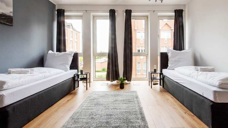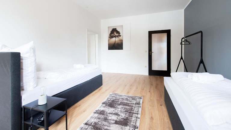 Working Loft Emmerich - 8 box spring beds bietet Übernachtungsmöglichkeiten mit Blick auf die Stadt und den Fluss. Die Unterkunft ist modern eingerichtet und bietet Platz für mehrere Gäste aufgrund der 4 vorhandenen Schlafzimmer. Die Ausstattung umfasst kostenfreies WLAN und kostenlosen Privatparkplatz.