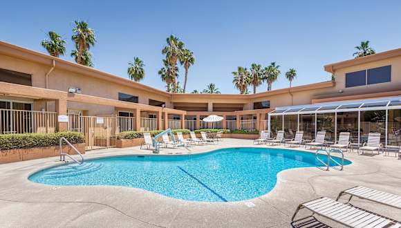 Das WorldMark Palm Springs - Plaza Resort and Spa befindet sich in Palm Springs, umgeben von einer sonnenverwöhnten Landschaft. Es liegt etwa 8 km von der Innenstadt entfernt, wo zahlreiche Restaurants und Bars zu finden sind. Einkaufsmöglichkeiten, Restaurants und Casinos sind in ca. 5 Minuten erreichbar. Der Aquapark Knotts Soak City ist ca. 1,5 km entfernt, während der Wüstenzoo Living Desert etwa 13 km vom Hotel weg ist.