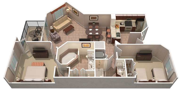 Die Unterkunft bietet geräumige Suiten im Apartmentstil mit 2 oder 3 Schlafzimmern. Jede Suite verfügt über eine voll ausgestattete Küche, separate Wohn-, Schlaf- und Essbereiche sowie ein Badezimmer mit Whirlpool-Badewanne. Zur Ausstattung gehören auch DVD-Player, Flachbild-Kabel-TVs und kostenfreies WLAN.